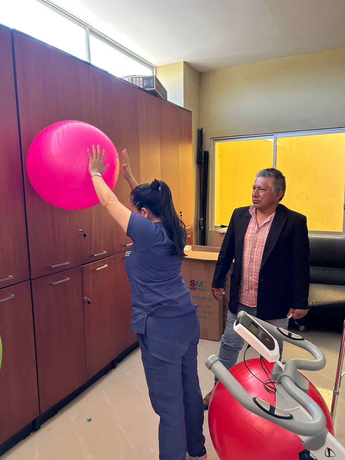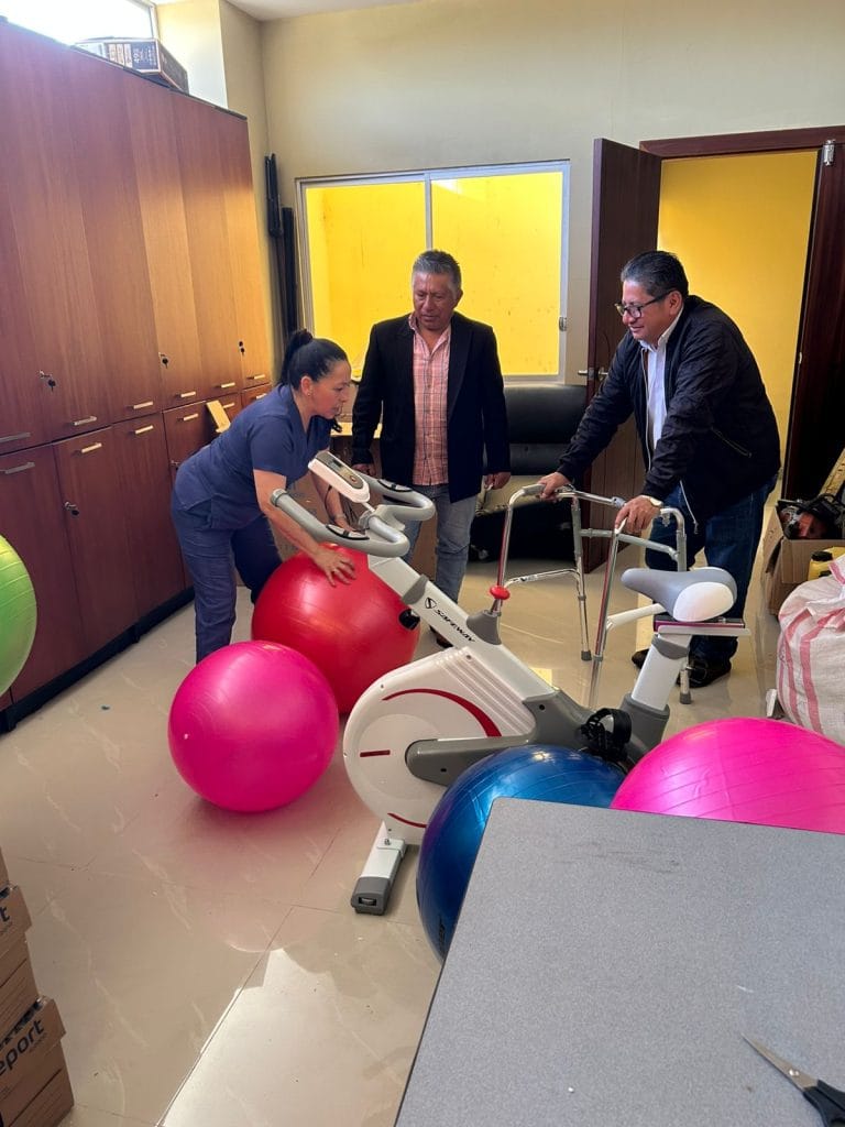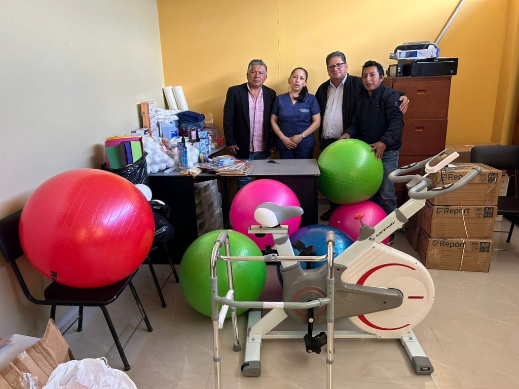 Entre los principales materiales entregados tenemos; bicicleta estática, máquina masajeadora, balones terapéuticos, ligas, compresas e insumos terapéuticos. Para terapias manual tenemos guantes, gel frío, cremas antinflamatorias, aceites, vendas otros.